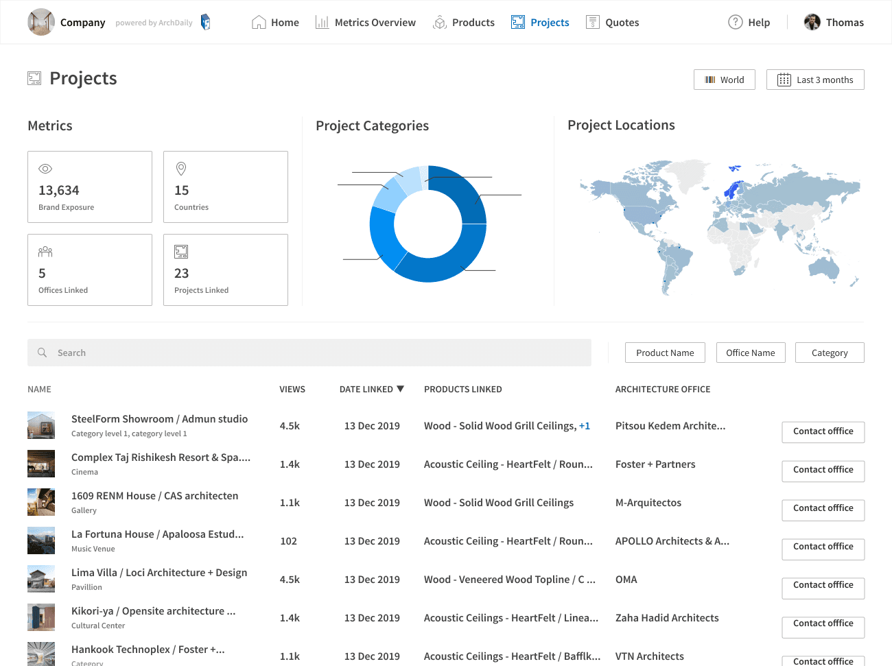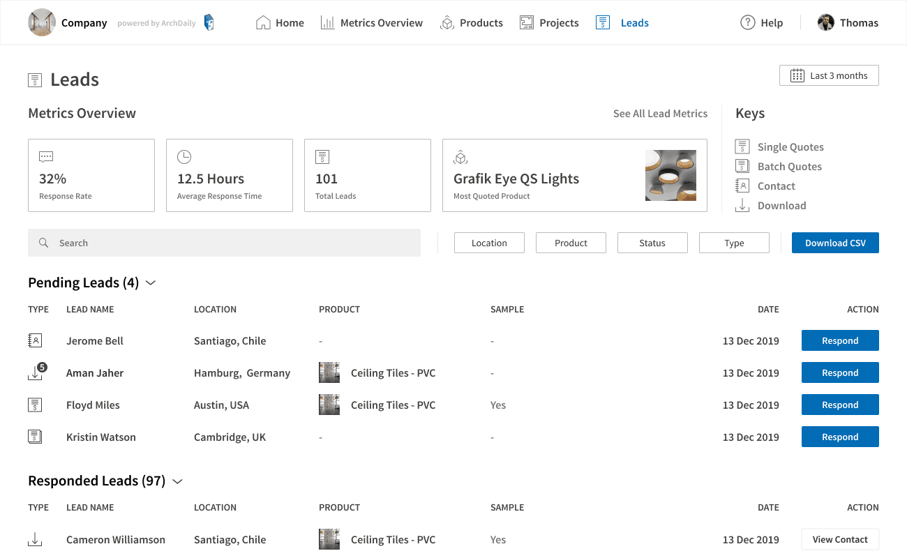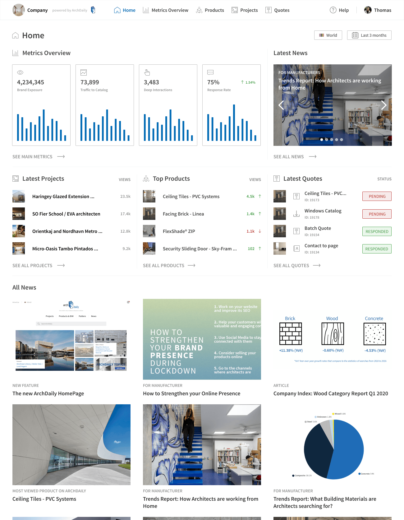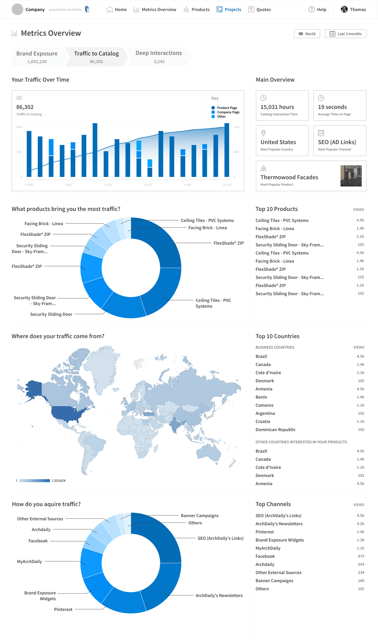 One of the core products we offer our paying customers is the Dashboard where data that their products and brand generate inside of ArchDaily are showcased. We have over 300 paying customers (See here), which include the most important brands related to architecture such as (Autodesk, Bradley, Hunter Douglas, Sherwin Williams, Velux, + many more). Since we bring over 200m monthly page views, the data and connections we bring to our customers are of extreme importance.
