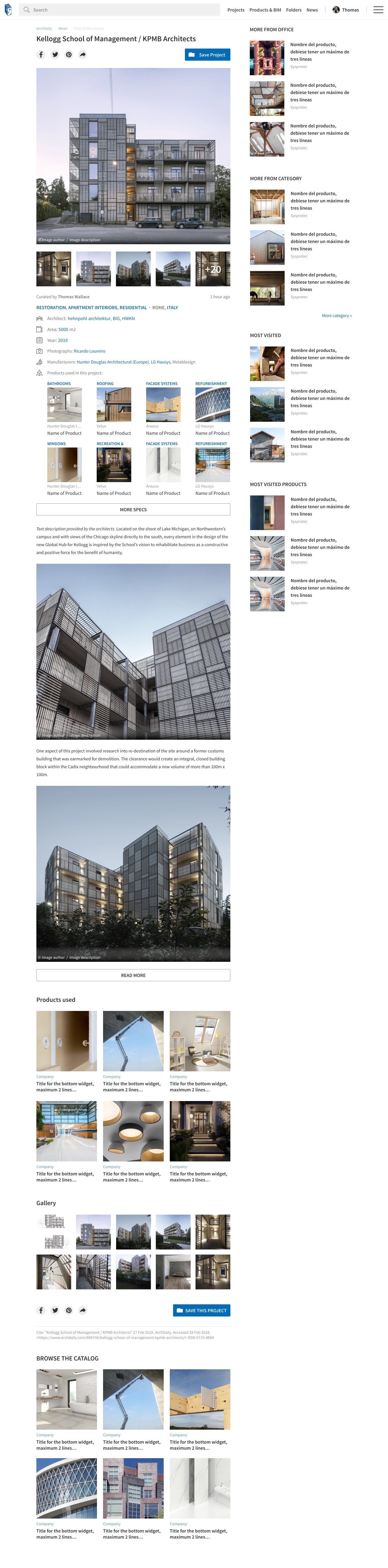 Singles are our most viewed pages in ArchDaily. They are the template for an architecture project. However, the main information of the project was being visually lost, as it was an unappealing "key:value" view. Therefore we set out to give it a cleaner look, with the use of icons and highlighting the clickable items. I designed every icon.
